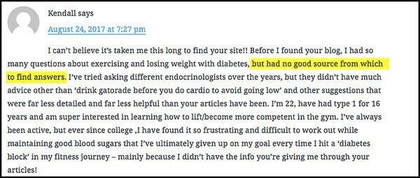 This first comment showed me that there isn’t much information online to help diabetics exercise and lose weight.