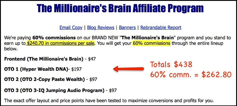 There is an affiliate opportunity with this program. It claims to pay you 50% or 60% commissions and you can earn up to $242.49 per sale. Another page says $242.49. Yet another says $294.58. It’s all ridiculously calculated. This is why:
