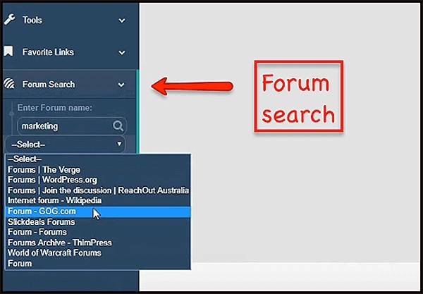 Just type in the type of forum you’re looking for, such as “marketing”, and different forum links will show you for you.